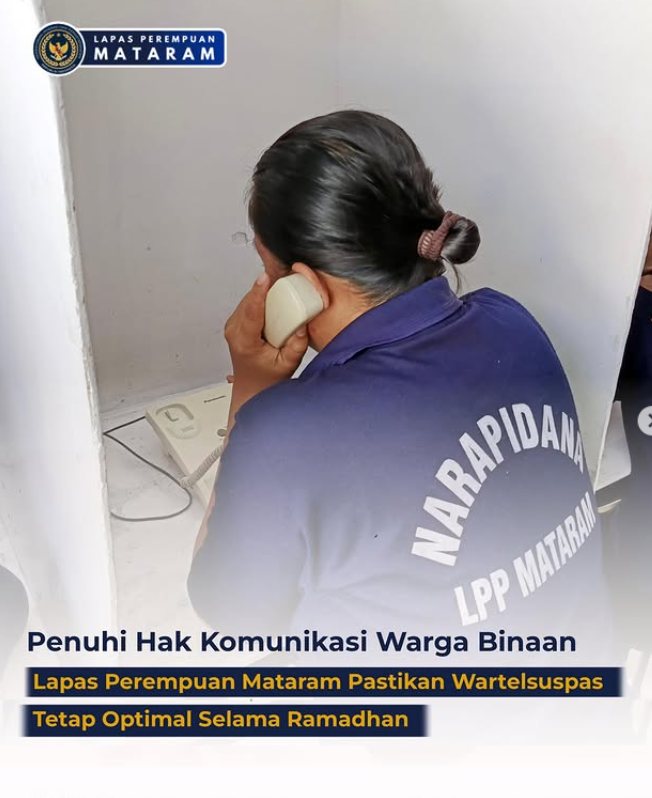 Mataram (21/02) – Lapas Perempuan Kelas III Mataram memastikan pemenuhan hak komunikasi bagi warga binaan tetap berjalan optimal selama bulan suci RamadHan melalui layanan Wartelsuspas (Warung Telekomunikasi Khusus Pemasyarakatan). Langkah ini menjadi bagian dari komitmen memberikan pelayanan yang humanis, profesional, dan berorientasi pada pemenuhan hak warga binaan. Melalui fasilitas ini, warga binaan dapat berkomunikassi dengan